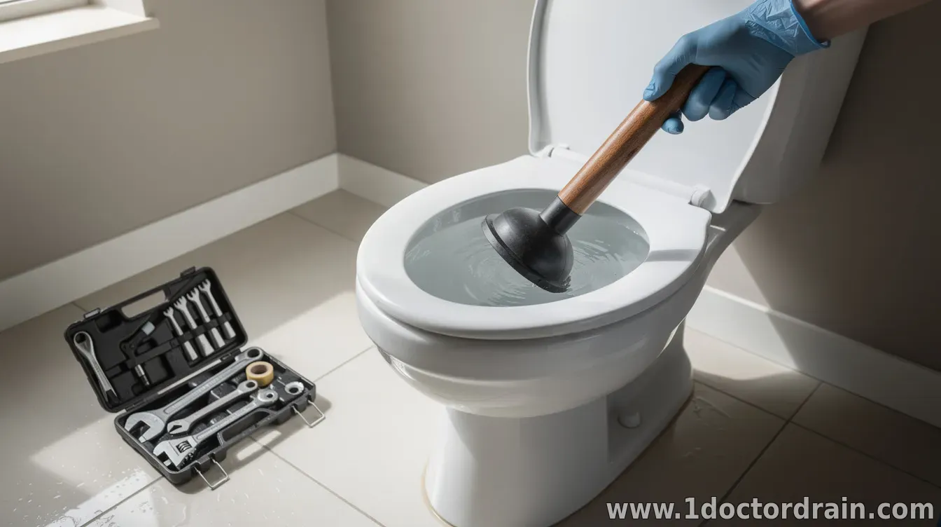 Step 1: Use a flange plunger. A proper toilet plunger creates a better seal and more force. Position the plunger in the drain and push and pull firmly in smooth, straight movements for 15–20 seconds. If water still won’t clear, pause and repeat a few times before moving on.